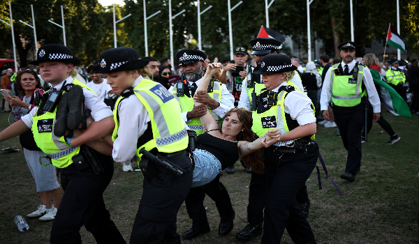 “Kami kini telah menahan 466 orang ketika orang ramai memegang sepanduk menyokong Palestin”, kata pegawai polis yang menyatakan kumpulan protes ditahan di bawah undang-undang antikeganasan.