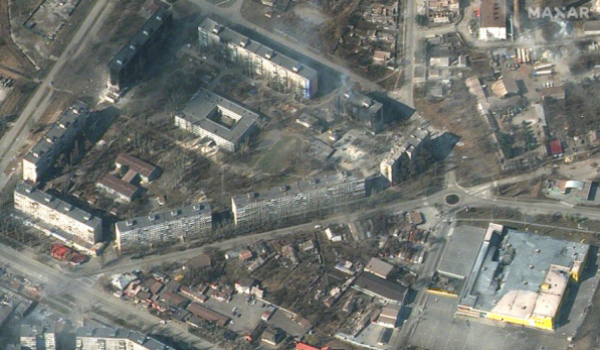 (Imej satelit Maxar menunjukkan kebakaran dan kerosakan bangunan di Mariupol/AFP)