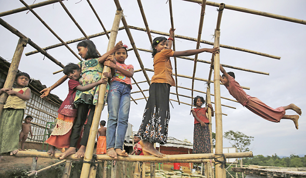 (Kanak-kanak pelarian Rohingya bermain di sekitar sebuah pam air di Kem Pelarian Balukhali, Bangladesh/AP)