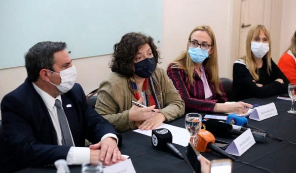 Carla Vizzotti (dua dari kiri) semasa sidang media di Tucuman, Argentina/ AFP)