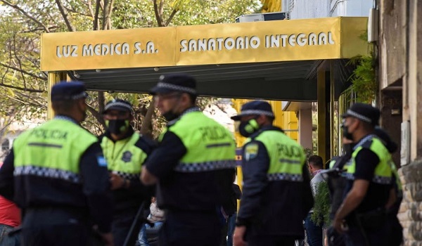 (Pegawai polis di pintu masuk Hospital Luz Medica di Tucuman, Argentina/ AFP)