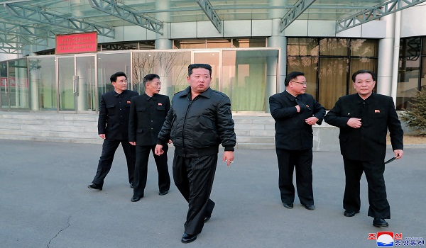 (Pemimpin Korea Utara, Kim Jong Un (tengah) sedang memerika pusat