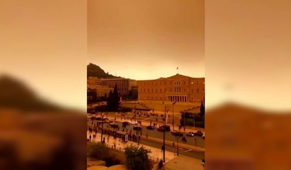 ATHENS, 24 April- Debu padang pasir dari Gurun Sahara di Afrika menutupi ibu kota Athens di Greece hingga menjadikan bandar itu bertukar kepada warna ‘jingga’.