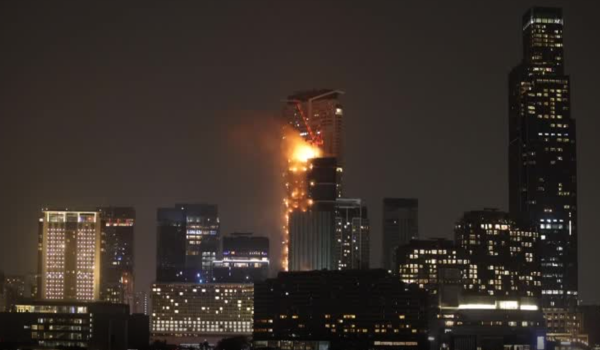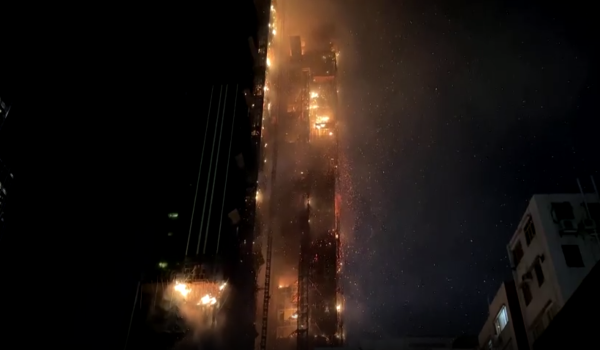 HONG KONG, 3 Mac- Sebuah bangunan pencakar langit yang sedang dalam pembinaan di sini terbakar.