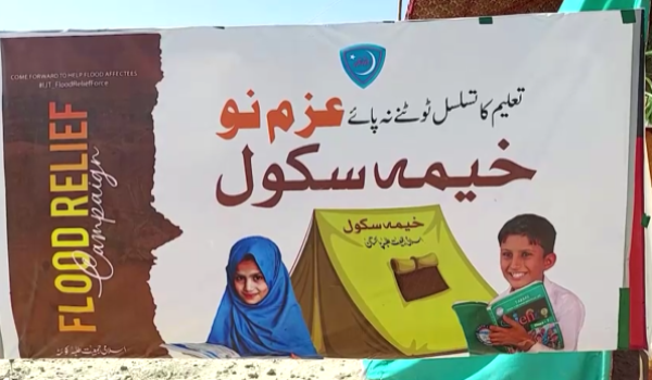 PAKISTAN, 27 September- Yayasan Al-Khidmat Pakistan, yang merupakan sebuah badan bukan kerajaan (NGO) tempatan mendirikan ‘sekolah sementara’ di kem bantuan banjir, Quetta, ibu kota wilayah Balochistan.