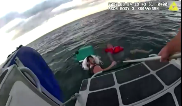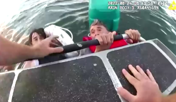 Rakaman video oleh Jabatan Polis Boston memaparkan detik kedua-dua lelaki itu menggigil ketika diangkat dari air. Mereka berpaut pada kotak penyejuk sebagai alat pengapungan.