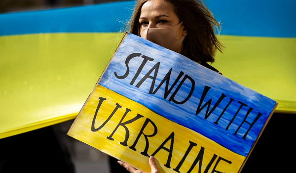 (Seorang penunjuk perasaan di sebelah bendera Ukraine semasa tunjuk perasaan di Tokyo menentang tindakan Rusia di Ukraine, pada 5 Mac 2022/FOTO HIASAN AFP)