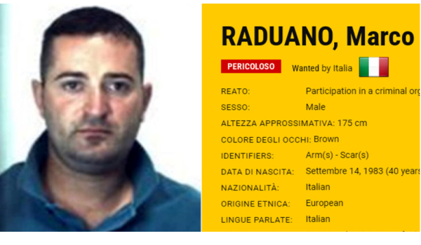 Marco Raduano yang digambarkan sebagai berbahaya oleh Interpol Eropah dan disenaraikan sebagai penjenayah paling dikehendaki dipenjarakan di Bastia yang terletak di Pulau Corsica di Perancis.