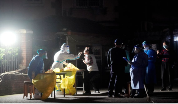 (kakitangan kesihatan melakukan ujian swab untuk penduduk di Shanghai/REUTERS)
