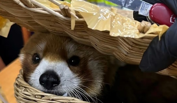 Gambar yang dikeluarkan oleh jabatan itu menunjukkan panda merah, spesies terancam mengintai keluar dari bakul rotan, dan burung nuri ditutup dalam bekas plastik dengan lubang udara pada penutupnya.