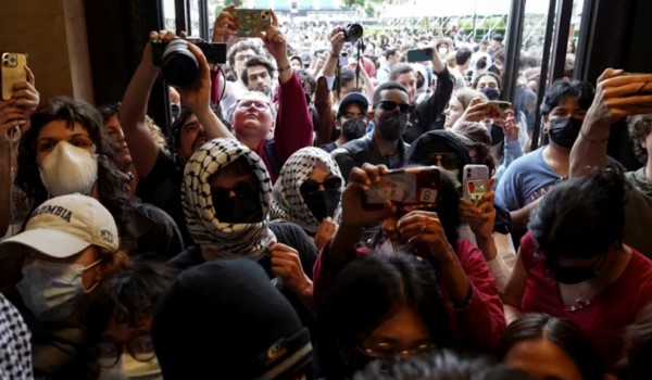 NEW YORK, 8 Mei– Puluhan penunjuk perasaan pro-Palestin mengadakan demonstrasi besar-besaran di ruang bacaan utama Perpustakaan Butler, Columbia University, pada Rabu.