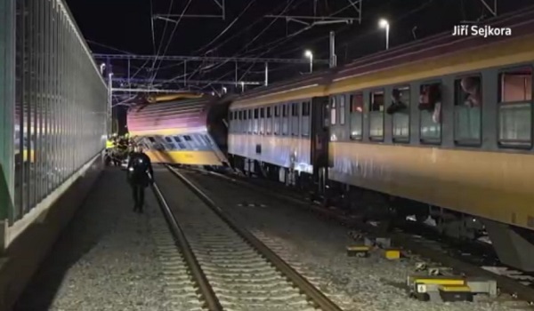 Rakaman TV Czech menunjukkan sekurang-kurangnya satu gerabak tergelincir dan penumpang sedang dibawa masuk ke dalam bas berhampiran stesen utama Pardubice.