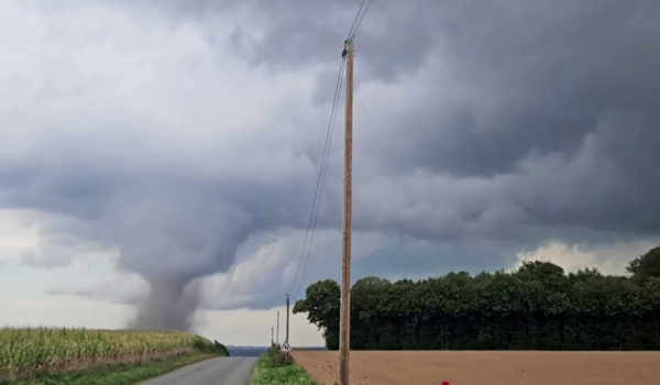 Menerusi video yang dirakam orang awam, puting beliung dilihat berlaku berhampiran jalan raya sekitar Perancis. – REUTERS