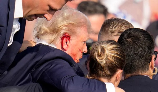 Telinga kanan Trump dilihat berlumuran darah pada 13 Julai selepas dia cedera semasa perhimpunan kempen di Pennsylvania.