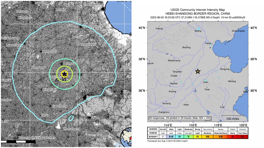 Jabatan Kajian Geologi Amerika Syarikat (USGS) memaklumkan, gempa berlaku sekitar pukul 2.33 pagi waktu tempatan melanda 26 kilometer di selatan bandar Dezhou dekat wilayah Shandong pada kedalaman 10 kilometer (km).