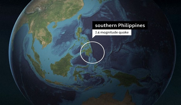 Ketua Agensi Seismologi Filipina, Teresito Bacolcol, berkata amaran tsunami telah dikeluarkan, susulan gempa yang berlaku kira-kira 20 kilometer dari bandar Manay di wilayah Mindanao pada pukul 9.43 pagi pada waktu tempatan.