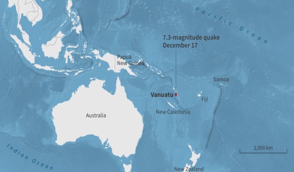 SYDNEY, 17 Disember– Gempa bumi dengan magnitud 7.3 melanda pada Selasa di luar pesisir negara kepulauan Pasifik, Vanuatu.