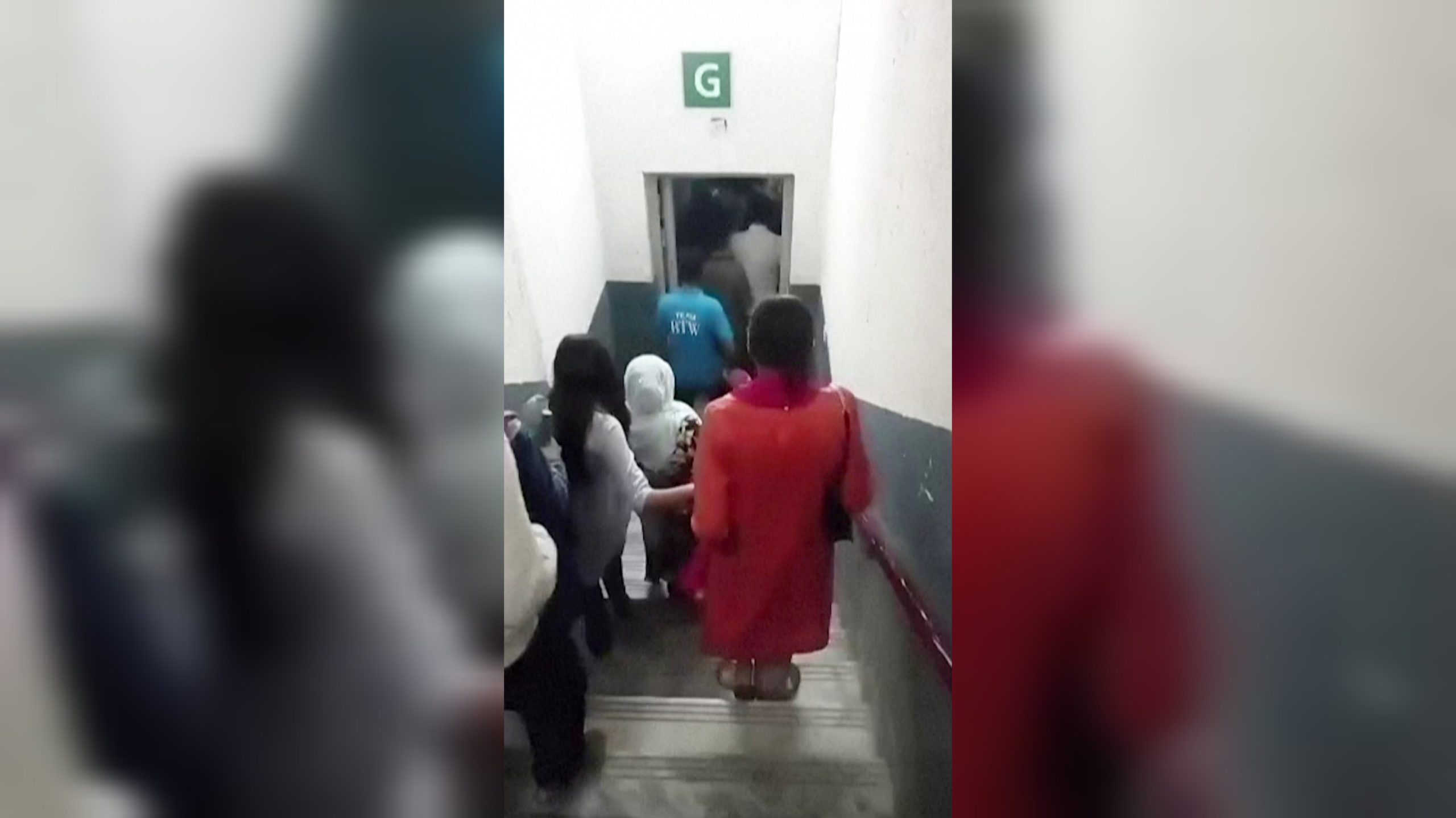 (Orang ramai berpusu-pusu keluar dari sebuah pusat beli-belah di Islamabad ketika gempa bumi dirasai