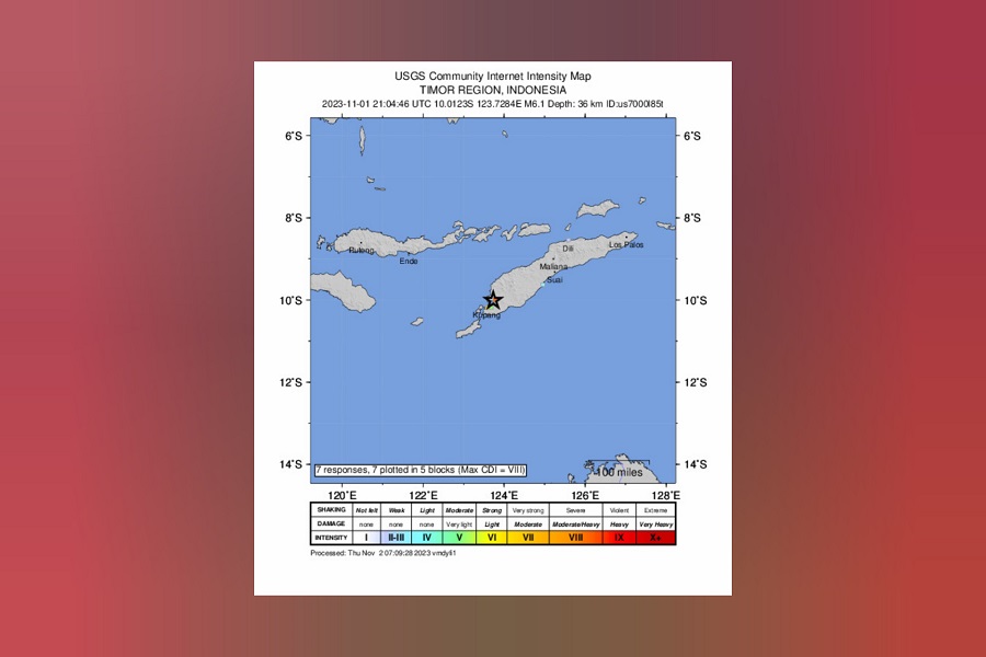 KUPANG, 2 November- Gempa bumi berukuran 6.1 magnitud melanda Pulau Timor, Indonesia pagi tadi, menggegarkan ibu kota wilayah itu dan memaksa penduduk berlari keluar untuk menyelamatkan diri.