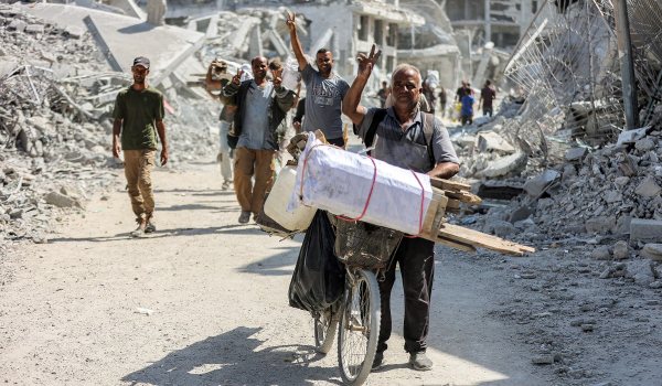 - Ribuan penduduk pulang melintasi runtuhan membawa harapan untuk pengakhiran penderitaan.