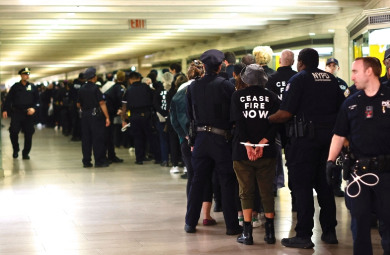 Kumpulan Jewish Voice for Peace, yang menganjurkan demonstrasi itu, menyiarkan video di Instagram yang menunjukkan polis di balai mengiringi barisan penunjuk perasaan yang panjang, yang memakai baju bertulis “Cease Fire Now” dan “Not In Our Name” dengan tangan diikat di belakang mereka.