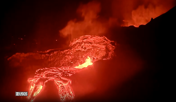 Rakaman dikeluarkan Kajian Geologi Amerika Syarikat (USGS) memaparkan aliran lava yang mengalir merentasi kawasan sekitar.