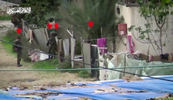 Rakaman tersebut memaparkan lima lelaki berpakaian tentera Israel berjalan berhampiran sebuah bangunan.