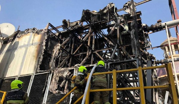 (Bumbung bangunan hotel selepas api telah dipadamkan/FOTO Pertahanan Awam Dubai)
