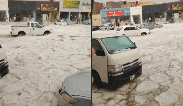 BURAYDAH, 31 Disember- Hujan batu atau hujan ais batu membanjiri bandar Buraydah tengah Arab Saudi, baru-baru ini.