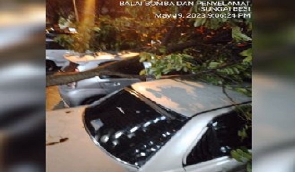 “Pokok yang tumbang menghempap dua buah kenderaan jenis Toyota Yaris dan Proton Exora, sebuah perodua Myvi serta dua kenderaan lain di tiga lokasi berkenaan.