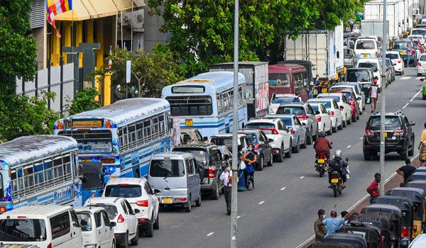 (Orang ramai sedang beratur di sepanjang jalan untuk membeli bahan bakar di stesen bahan minyak Ceylon di Colombo pada 18 Mei 2022/AFP)