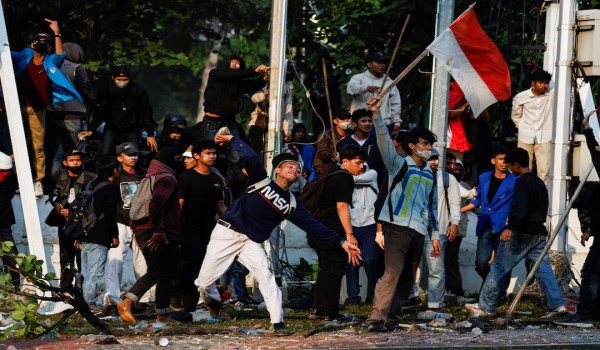 Lewat Khamis, beberapa penunjuk perasaan masih menyalakan api di hadapan parlimen dan cuba merobohkan pagar Parlimen.