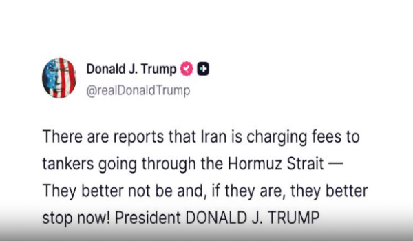 “Terdapat laporan bahawa Iran mengenakan bayaran kepada kapal tangki yang melalui Selat Hormuz. Mereka lebih baik jangan melakukannya, dan jika ya, mereka mesti hentikan sekarang!” tegas Trump dalam satu hantaran berasingan.