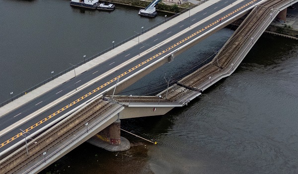 Kira-kira 100 meter bahagian Jambatan Carola, yang menghubungkan bandar lama Dresden dengan bahagian lain di bandar terbabit jatuh ke dalam Sungai Elbe sekitar pukul 3.00 pagi waktu tempatan, menurut bomba.