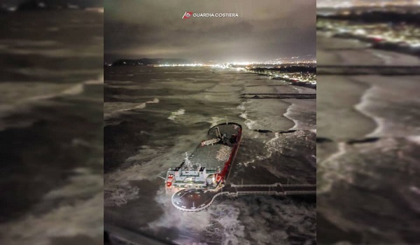 Kapal berdaftar di Cyprus itu, yang berukuran lebih 100 meter panjang, berlabuh di Pelabuhan Marina di Carrara berhampiran Massa ketika ombak kuat mengalihkan sauhnya, menyebabkan kapal hanyut ke arah pantai.
