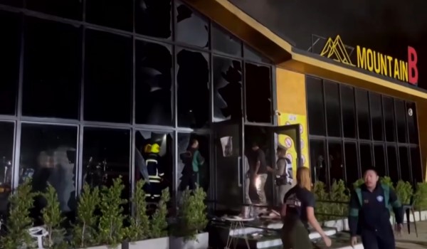 Video di media sosial menunjukkan asap hitam tebal berkepul-kepul muncul dari pintu ketika beberapa pengunjung dilihat berlari keluar dengan pakaian mereka terbakar.