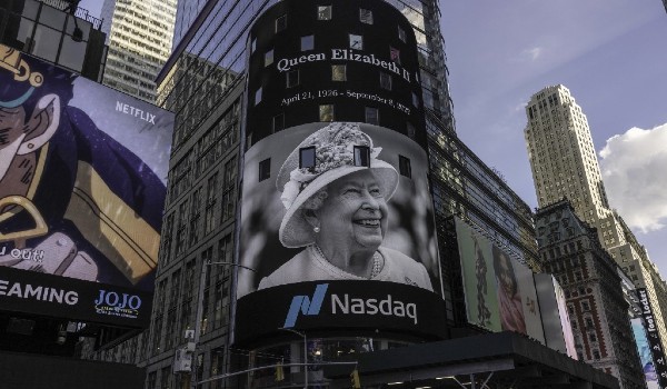 (Imej Ratu Elizabeth II dipaparkan di Times Square