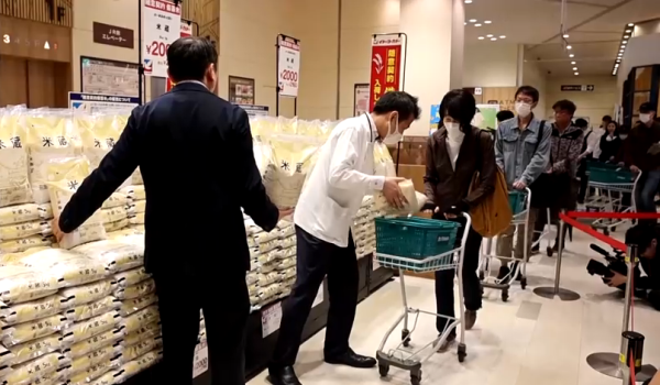 Dalam perubahan dasar yang mendadak, kerajaan Jepun minggu lalu mula membekalkan beras simpanan kepada peruncit untuk dijual pada harga sekitar 2,000 yen untuk satu kampit beras 5 kilogram iaitu kurang daripada separuh harga semasa.