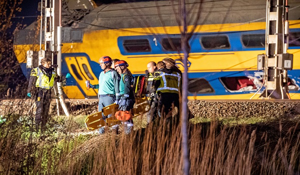 Perkhdimatan kecemasan memaklumkan, kereta api itu tergelincir selepas bertembung dengan peralatan pembinaan di laluan berhampiran perkampungan Voorschoten, antara The Hague dan Amsterdam.