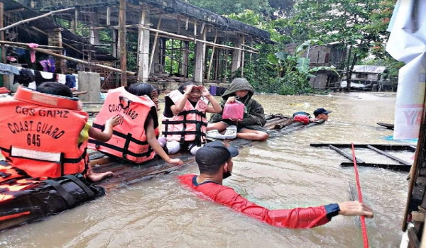 (Pengawal Pantai Filipina memindahkan penduduk dari kediaman mereka yang dinaiki air di bandar Panitan selepas Ribut Tropika Megi membawa hujan lebat ke kawasan tersebut/AFP)
