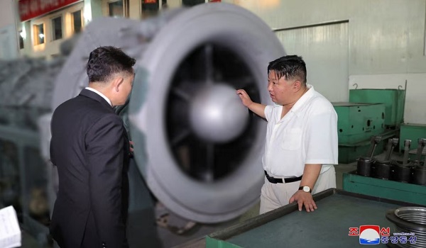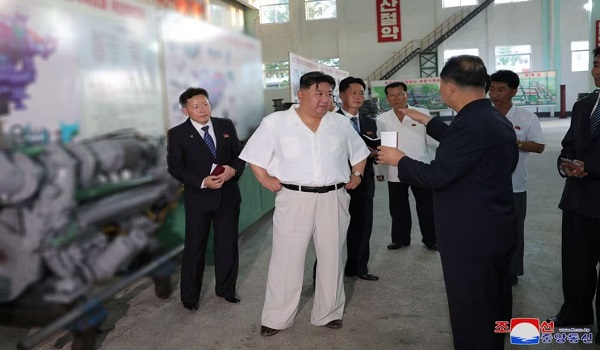 (Kim Jong Un memeriksa mesin kompleks Pukjung, gambar KCNA/REUTERS)