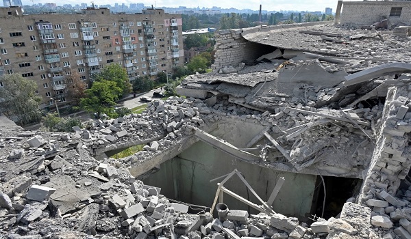 (Foto menunjukkan bumbung bangunan kediaman rosak selepas dibedil di Kharkiv