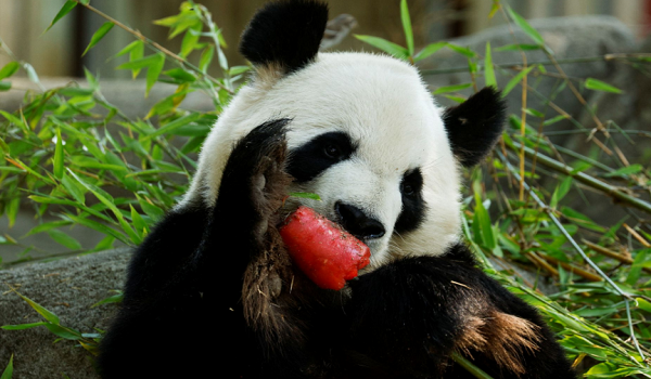Sebagai tambahan kepada diet hariannya sebanyak 50 kg buluh segar, Bing Xing, yang namanya bermaksud “binatang ais”, kelihatan tidak sabar-sabar mengunyah buah sejuk yang dibekukan.