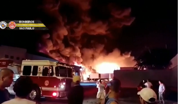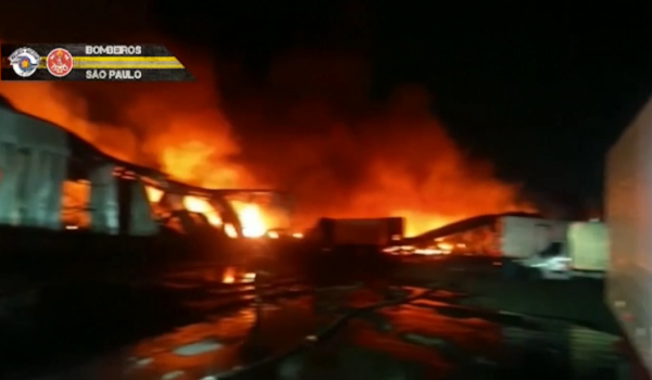 Video yang dikeluarkan pihak bomba Brazil menunjukkan api besar dan asap tebal di gudang barangan keperluan rumah itu.