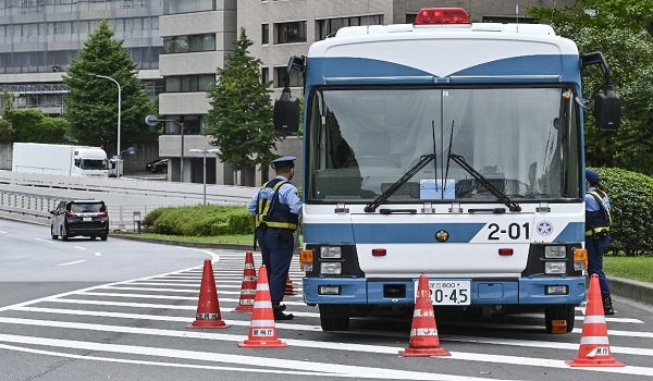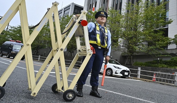 (Polis berkawal di jalan menuju ke kediaman rasmi perdana menteri di Tokyo di mana seorang lelaki membakar dirinya