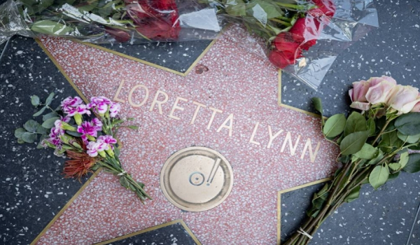 (Bunga diletakkan sebagai tanda penghormatan Loretta Lynn di Hollywood