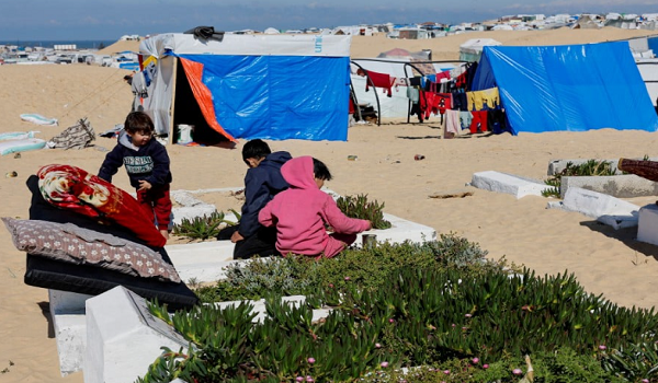 Keluarga itu adalah antara puluhan rakyat Gaza yang berkhemah di tanah perkuburan, atas hamparan berpasir dengan pemandangan Laut Mediterranean di kaki langit, kerana mereka berasa kurang berisiko daripada pengeboman Israel.