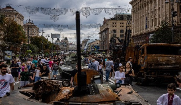 KYIV, 22 Ogos– Puluhan kereta kebal dan kenderaan tentera Russia yang musnah dalam operasi ketenteraan khas Moscow di Ukraine, dipamerkan di sekitar jalanan di pusat bandar Kyiv.