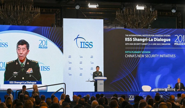 (Li Shangfu menyampaikan ucapan semasa sidang kemuncak Dialog Shangri-La ke-20 di