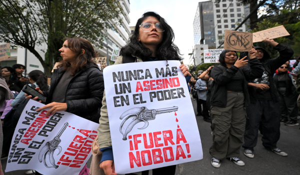 Antara slogan yang dibawa termasuk “Noboa, pelombong, kehidupan didahulukan” dan “Tanah bukan untuk dijual”.